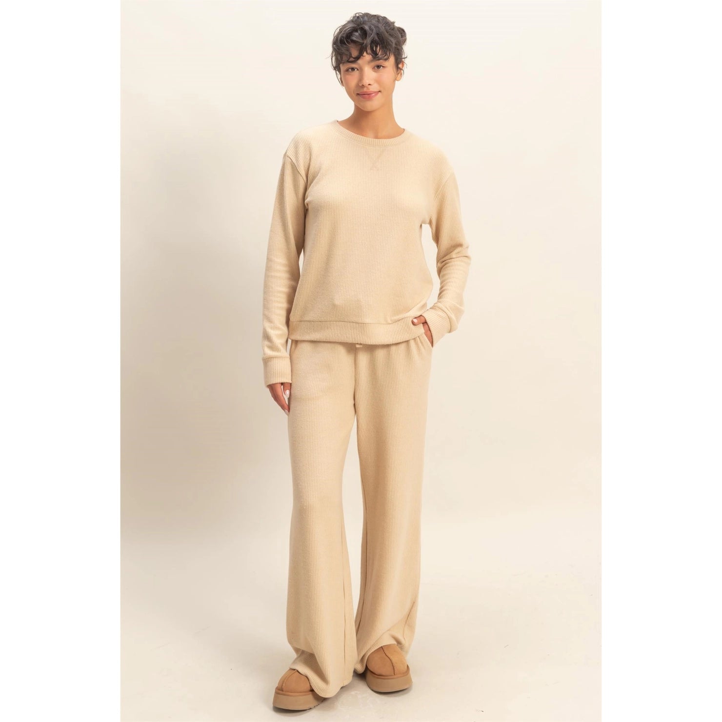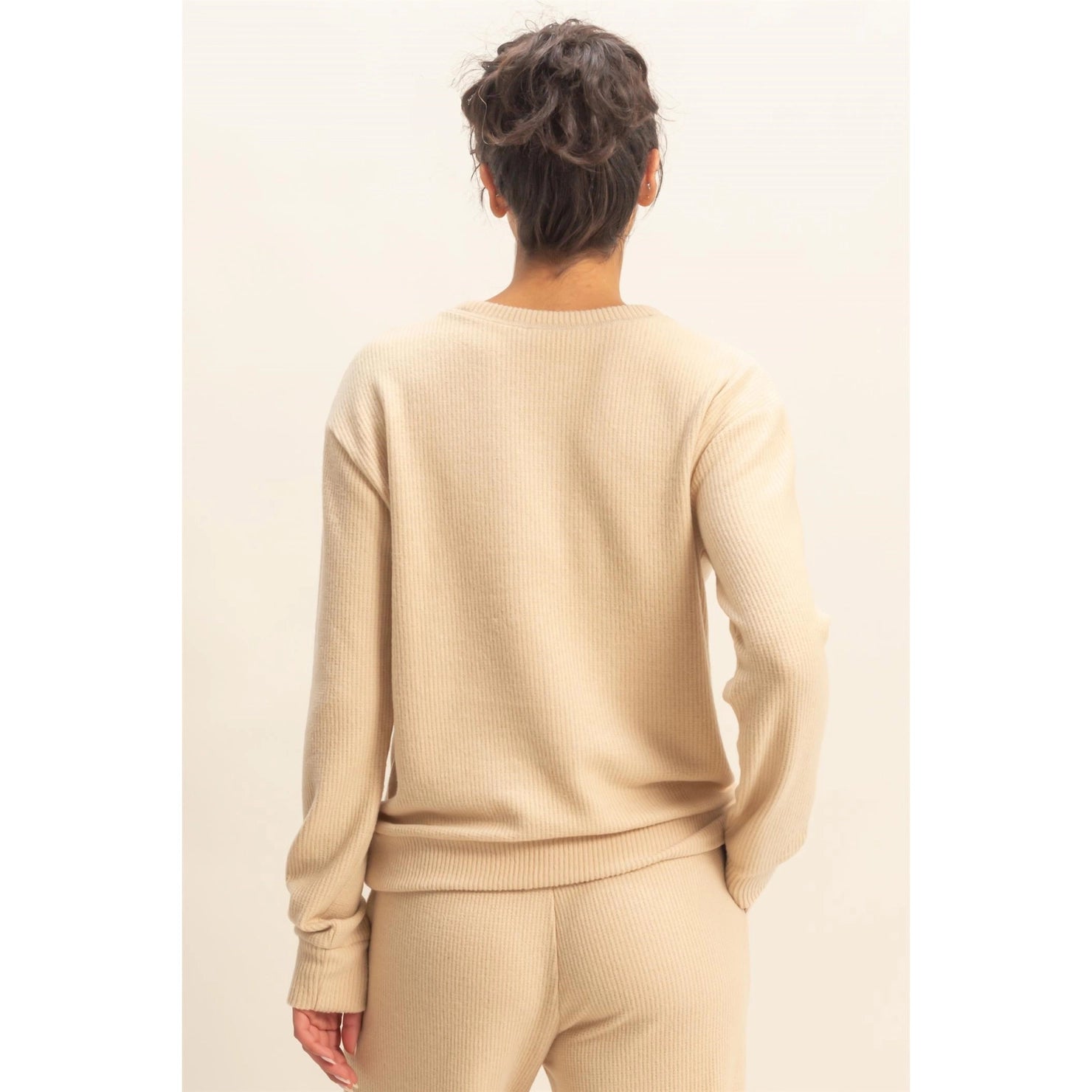 Made from brushed waffle material this crew neck long sleeve is comfortable to wear and perfect for daytime outings or casual evenings. The soft material gives off a warm vibe. Coordinate with the waffle sweatpants in the same material for a comfortable and trendy look.